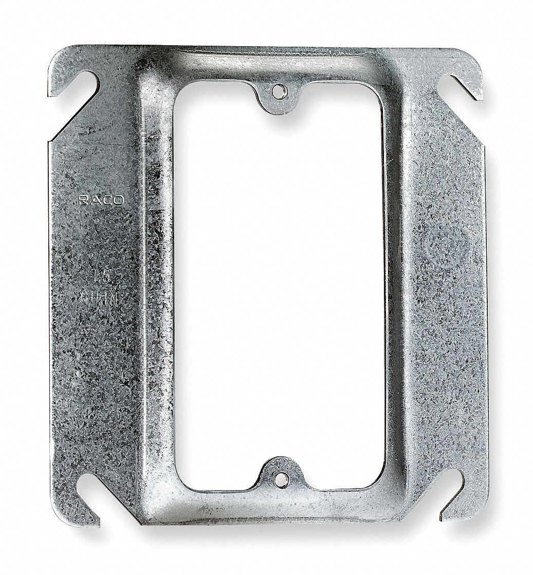 Mount to any combination of switch duplex receptacle gfci. Raco 2 gang galvanized steel 1 2 raised 4 11 16 square electrical box mud ring click to add item raco 2 gang galvanized steel 1 2 raised 4 11 16 square electrical box mud ring to the compare list. Raised rings ranging from 1 4 to 2 accommodate drywall and added wall thicknesses. Abb thomas and betts.